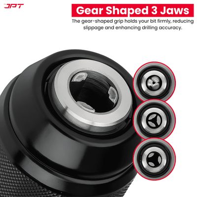 3-Jaw designed impact chuck adaptor capacity: 1.5mm - 13mm/ 1/16" - 1/2".Mount : 1/2"-20 UNF. All working parts hardened. Supplied with key.