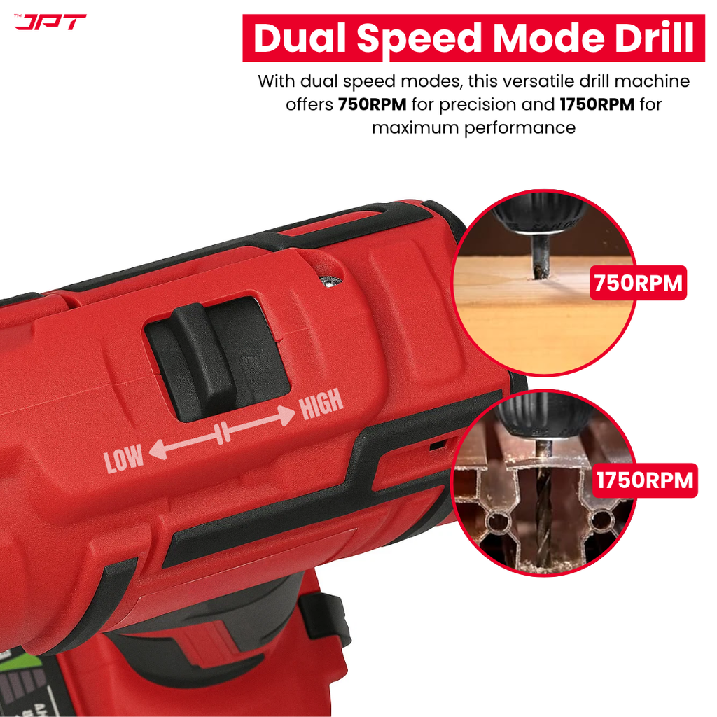 JPT brushless drill machine delivers up to 85 Newton-meters of torque, offering the power needed for demanding drilling and fastening jobs in wood, steel, or masonry.